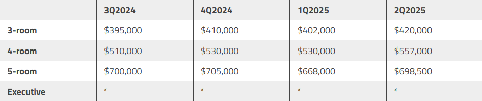 大巴窑过去四个季度的转售中位数价格数据呈现出值得关注的趋势。与三房式及五房式组屋相比,大巴窑四房式组屋转售价格在过去四个季度出现显著增长。这主要得益于比达达利的几个HDB项目——Alkaff Vista、Alkaff LakeView和Alkaff CourtView三个BTO项目相继于2024年末及2025年初达到最低居住年限。